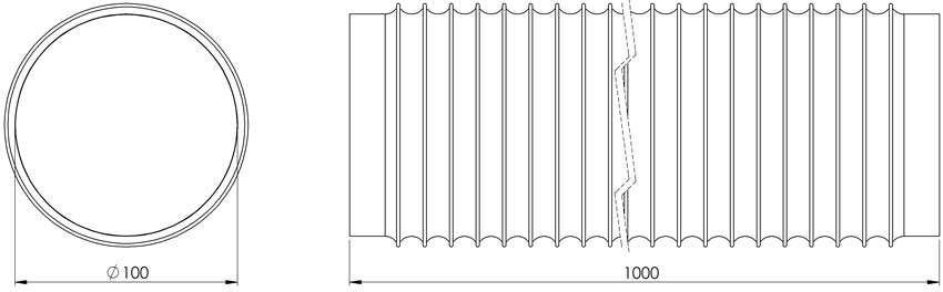 - Εύκαμπτος αεραγωγός PVC Flex, Europlast FV100-1, με διάμετρο Φ100mm και μήκος 1,00m.
