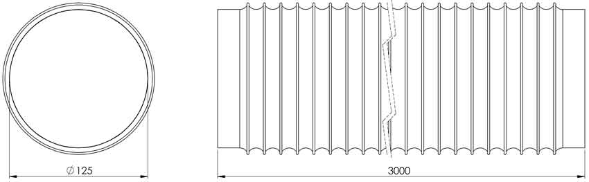 - Εύκαμπτος αεραγωγός PVC Flex, Europlast FV125-3, με διάμετρο Φ125mm και μήκος 3,00m.