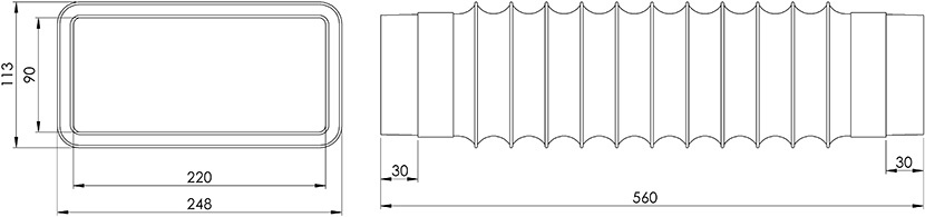 - Εύκαμπτος σύνδεσμος αεραγωγών Europlast KMS29, με μήκος 0,50m, για επίπεδους αγωγούς 220x90 mm.