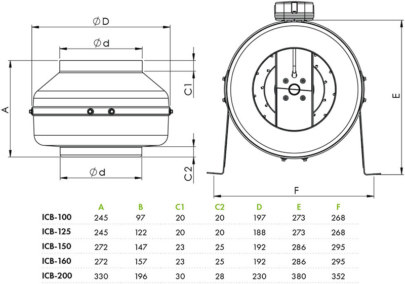- Σώμα μεταλλικό γαλβανιζέ υψηλής ποιότητας, πτερωτή από γαλβανισμένη λαμαρίνα με πτερύγια οπίσθιας κλίσης, για μεγάλο κύκλο ζωής.