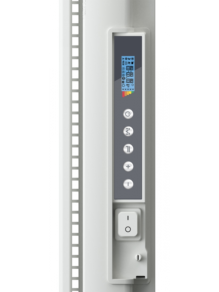 - Λειτουργία με ενσωματωμένο έξυπνο ψηφιακό θερμοστάτη χώρου με ακρίβεια ± 0,2 °C και αυτόματη ρύθμιση της ισχύος, για απόλυτο έλεγχο της κατανάλωσης.