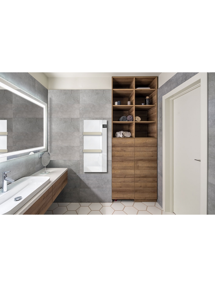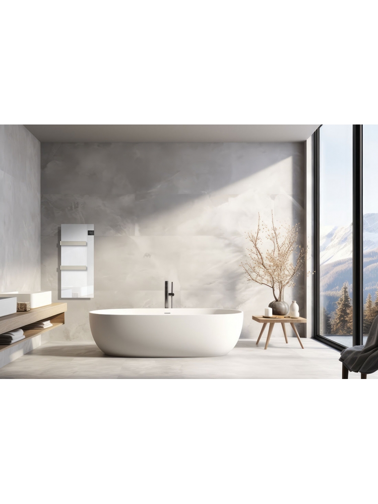 Radialight Silk 750 Watt Λευκή - Ψηφιακή Πετσετοκρεμάστρα Μπάνιου με Γυάλινη Πρόσοψη